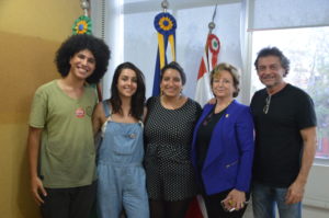 Na tarde desta terça-feira, 10 de outubro, a reitora em exercício, Alacoque Lorenzini Erdmann, o pró-reitor de Assuntos Estudantis, Pedro Manique e o chefe de Gabinete, Áureo Mafra de Moraes, receberam membros da nova gestão do Diretório Central dos Estudantes (DCE) para protocolar os representantes discentes para o Conselho Universitário.