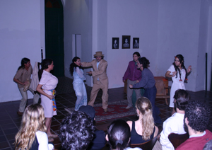 Montada na praça em frente ao Convivência com comidas, ioga, panfletagem, música.