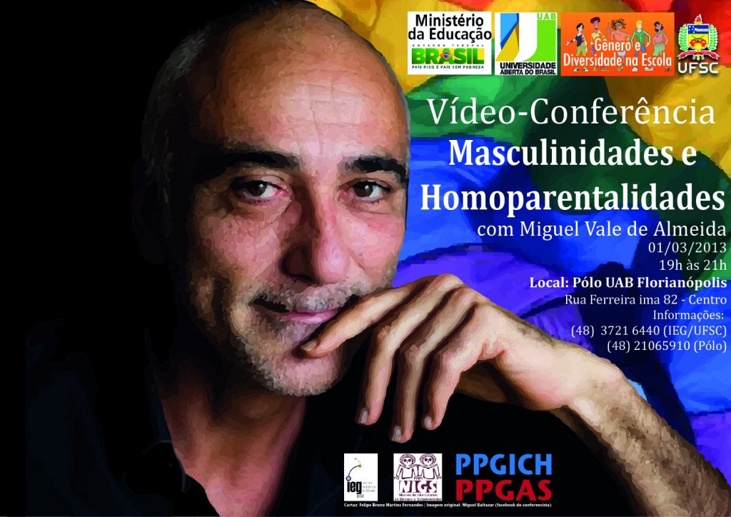 O antropólogo português Miguel Vale de Almeida ministrará uma videoconferência no dia 1º de março, das 19h às 21h, como parte das atividades do curso Gênero e Diversidade na Escola, promovido pela UFSC. O tema da palestra é “Masculinidade e Homoparentalidades”. A comunidade universitária poderá acompanhar a palestra pelo link (http://server.stream.ufsc.br/aovivo) ou no Pólo Universidade Aberta do Brasil (UAB) Florianópolis, localizado na Rua Ferreira Lima, 82, Centro.
