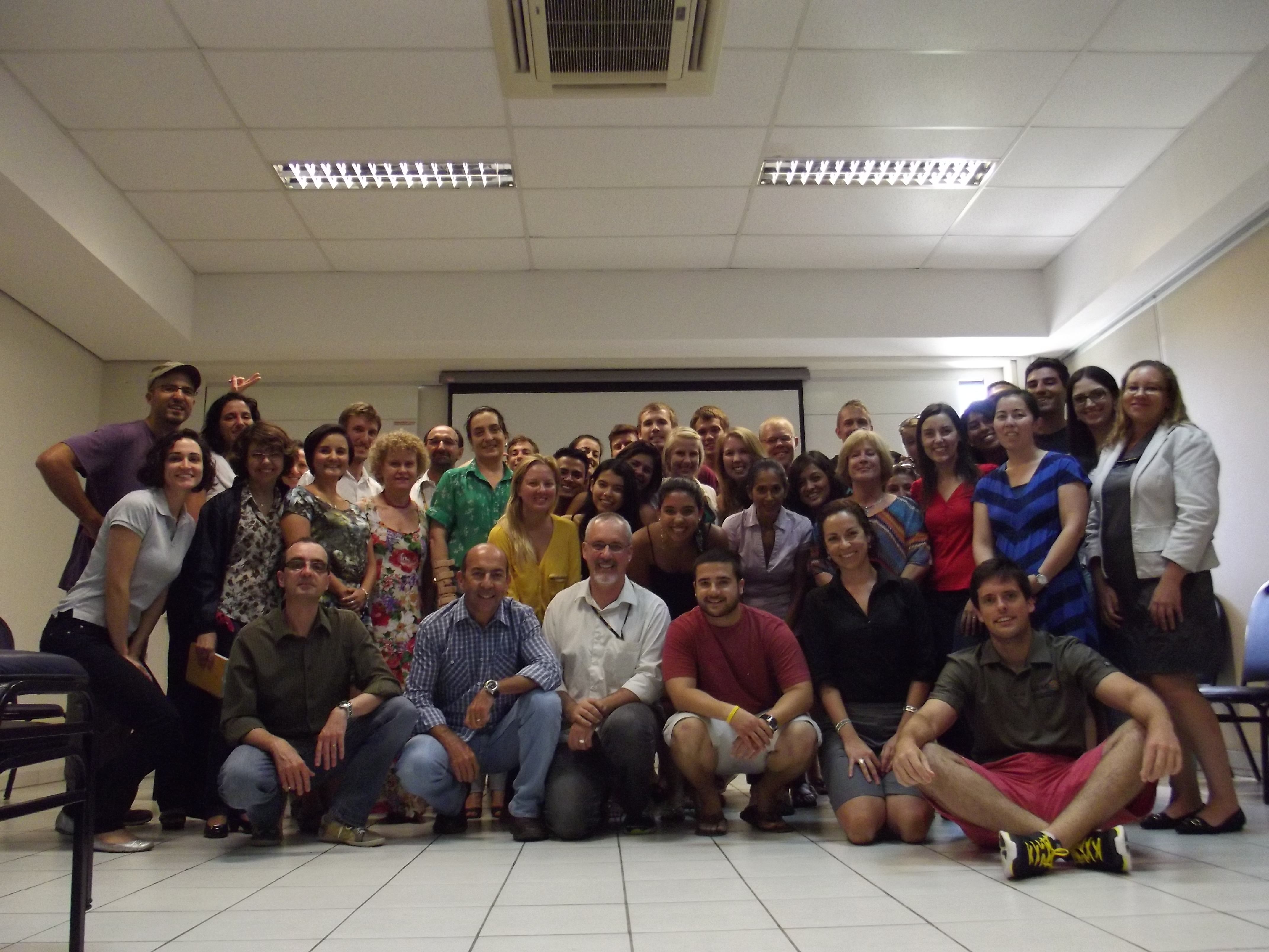 Ao final do evento, os estudantes da University Studies Abroad Consortium (USAC) em intercâmbio na UFSC neste semestre foram apresentados aos representantes da Administração Central.
