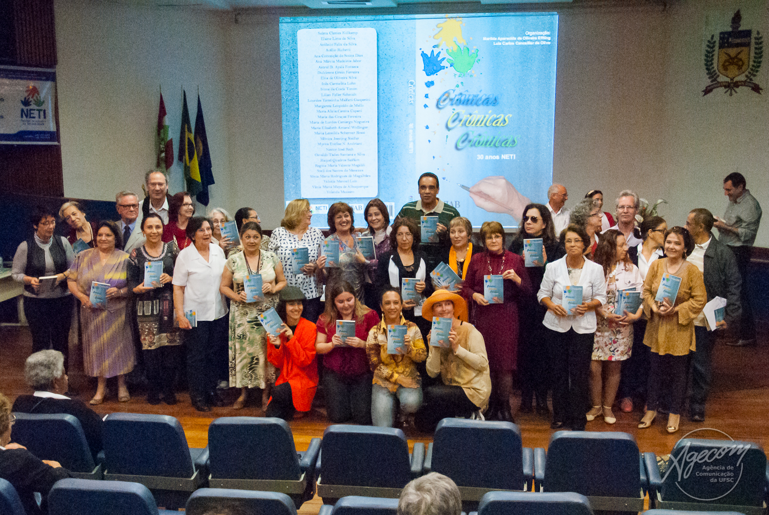 Dentro da aula inaugural ocorreu o lançamento do livro em comemoração aos 30 anos do Núcleo. “Crônicas: 30 anos NETI” é um compilado de 30 crônicas, selecionadas através de concurso, que contam a história do projeto por meio dos registros pessoais dos participantes traduzidos de forma literária. Um dos objetivos do lançamento do livro foi dar voz aqueles que por vergonha ou não terem oportunidade deixam de compartilhar suas histórias. A maioria dos 30 selecionados obteve sua primeira experiência como escritor. A vencedora do concurso de crônicas foi Selma Clemes, ex-aluna do curso de contadores de história, com a crônica “Azar de Azira”. O livro foi organizado por Marilda Aparecida de Oliveira e Luiz Carlos Cancellier, com apoio da Fundação José Arthur Boiteux (Funjab).