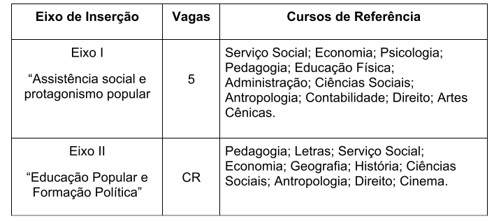 Podem se candidatar estudantes regularmente matriculados em curso de graduação da UFSC, preferencialmente conforme quadro a seguir, com disponibilidade de 12 horas semanais para dedicar-se às atividades relativas ao projeto de extensão.