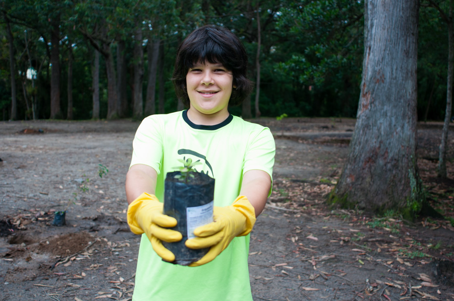 Foram plantadas 60 mudas de árvores de diversas espécies nativas, entre elas Araçá, Ipê branco e amarelo, Pitangueira e Ingá. Foto: Jair Filipe Quint / Agecom / UFSC