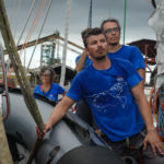 Integraram a expedição, além dos seis pesquisadores – oriundos da França, dos Estados Unidos, de Taiwan e de Israel –, uma jornalista e seis tripulantes (capitão, capitão imediato, chefe de convés, chefe das máquinas, mergulhador e cozinheira). Ao todo, eram 13 pessoas a bordo. E o trabalho era compartilhado. “Algo diferente nessa embarcação é que os pesquisadores participavam de toda a rotina diária, como lavar louça, limpar o banheiro, passar aspirador, servir a mesa e inclusive fazer o plantão noturno em turnos de 2 a 3 horas entre as 22h e 6h. Esse plantão noturno tornava o trabalho de pesquisa ainda mais exigente.”