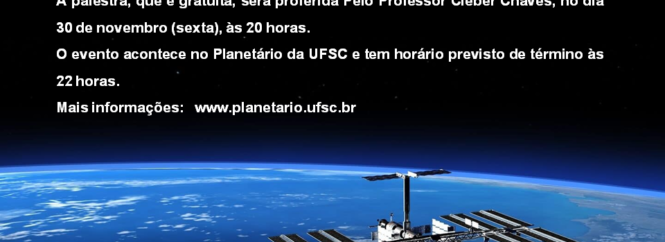 O Planetário da UFSC promove a palestra de divulgação científica “Estações Espaciais”. O evento, que é gratuito, terá a participação do professor Cléber Chaves e será realizado no dia 30 de novembro, sexta-feira, às 20 horas. O encontro ocorre no Planetário da UFSC e tem horário previsto de término às 22 horas. Mais informações no … Continue lendo Planetário da UFSC promove palestra sobre estações espaciais nesta sexta, 30 de novembro