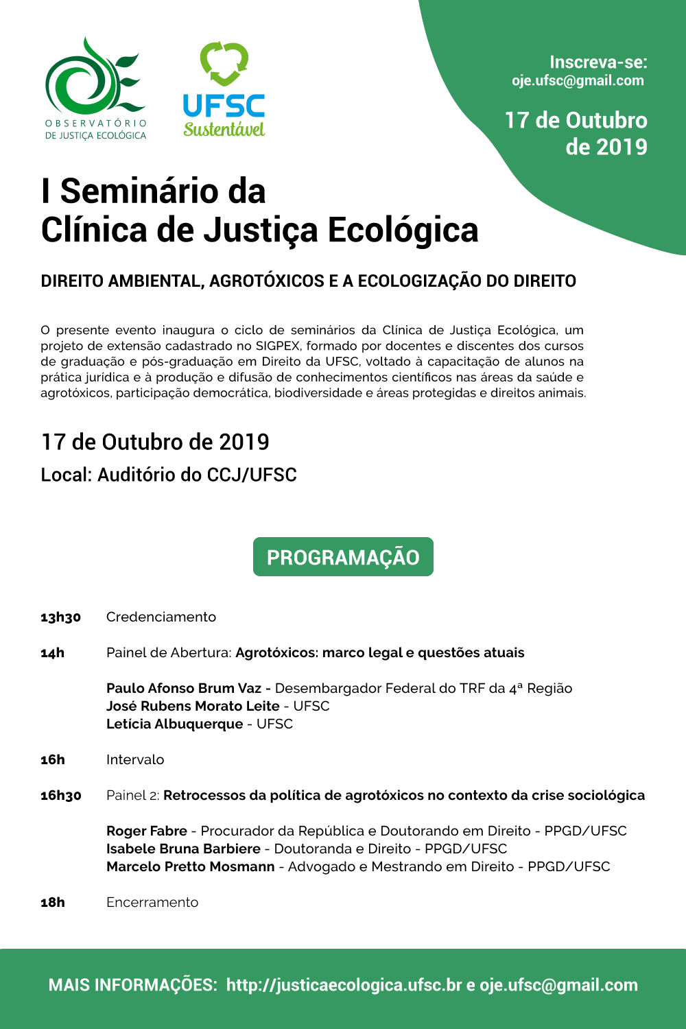 • 1º Seminário da Clínica de Justiça Ecológica ocorre no dia 17 de outubro