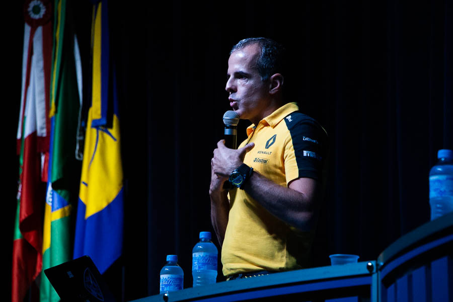 Durante os cinco anos em que cursou Engenharia Mecânica na UFSC, ele aproveitou o espaço acadêmico para aprender, orientar-se e descobrir em quais áreas se destacava. No seu último semestre, deu o primeiro passo na carreira no automobilismo: um estágio na fábrica da Renault, na França, por indicação do professor Narciso Ramos Arroyo, uma das cerca de 250 pessoas presentes na palestra. “Quando comecei no estágio achei que poderia não acompanhar os colegas. Porém, como a base de conhecimento técnico que a graduação me deu, finalizei um estágio de seis meses em apenas dois”, explicou.