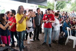 A professora, Carolina Bahia, comenta que se decidiu em assembleia que a paralisação não seria passiva, mas ativa. “Ela não significa um não-trabalho. Trouxemos a UFSC para a praça para esclarecer a infinidade de projetos de extensão que a instituição oferece”. O estudante Leonardo Moretto destaca que a ação de convocar assembleias e recolher assinaturas partiu da iniciativa estudantil diante da possibilidade da universidade ter de fechar as portas em agosto, devido ao corte de 35% do orçamento. Nesse sentido, percebe a importância do ato. “Acho que hoje representa principalmente uma disputa de narrativas, porque a narrativa do governo é dizer que a universidade é balbúrdia, e a gente está aqui para mostrar que não, que a universidade é essencial para Florianópolis e para Santa Catarina”.