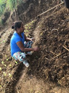 A professora do curso de Licenciatura e Educação do Campo, do Centro de Ciências da Educação (CED), Thaise Guzzatti, explica que além dos canteiros e composteira, outras mudas fornecidas por agricultores familiares, um deles, inclusive, aluno da UFSC, foram plantadas ao longo do terreno. “Nosso bolsista de Alfredo Wagner, Héliton Andrade – agricultor familiar que fornece alimentos para o projeto filantrópico Orgânico Solidário -, foi o responsável por conduzir a vivência de implantação da horta. Ele que trouxe as mudas de Alfredo Wagner (adquiridas por meio de doação financeira da Associação Acolhida na Colônia, que é parceira chave para a atuação do Orgânico Solidário em Santa Catarina)”, complementa.