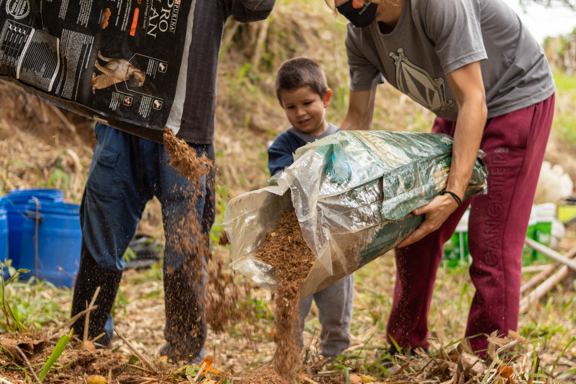 Durante toda a manhã de sábado, cerca de 15 adultos e várias crianças contribuíram para a iniciativa. Também participaram o Centro de Pastoral e Espiritualidade Nossa Senhora do Monte Serrat, o Conselho Comunitário do Monte Serrat e integrantes da ONG Laboratório Terra Orgânica, responsáveis pela construção da composteira.