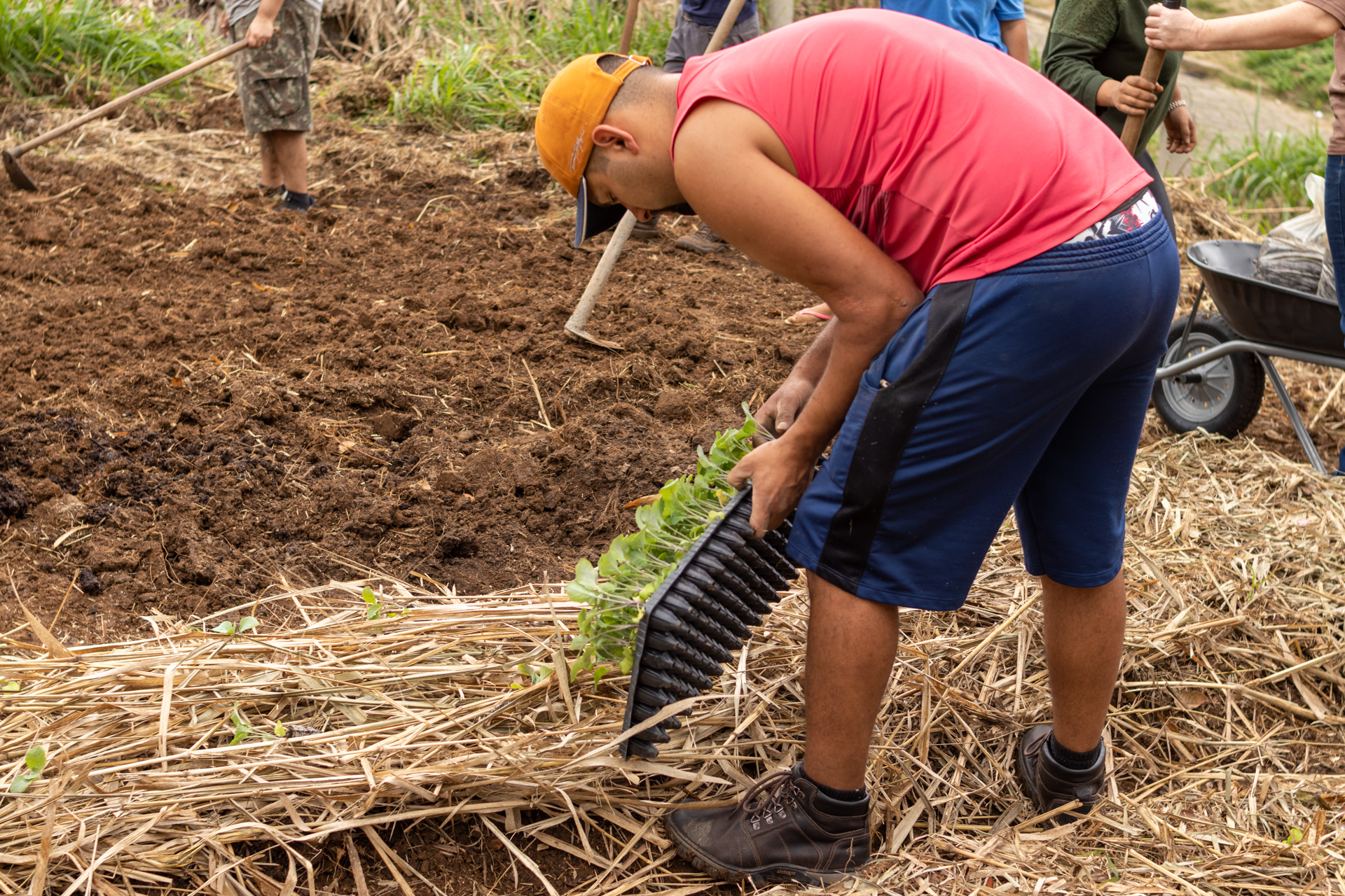 Os ensinamentos desse cuidado vieram de voluntários como Héliton, que, segundo sua professora Thaise, dividiu seus conhecimentos como estudante universitário e produtor agroecológico, e no meio do processo, também se encantou com as possibilidades de aprendizado de um movimento como o da Horta Nova Descoberta. “Faz parte da formação dos estudantes. O Héliton veio de Alfredo Wagner para Florianópolis, num sábado de manhã, e estava encantado com o envolvimento e força de vontade da comunidade. Por outro lado, ficou impressionado com a quantidade de casas precárias e as condições de vida difíceis no Monte Serrat. Ele lembrou que muitos jovens do município dele saíram para Florianópolis e estão nos morros, morando em situação precária e sem acesso à alimentação digna”, conta Thaise.