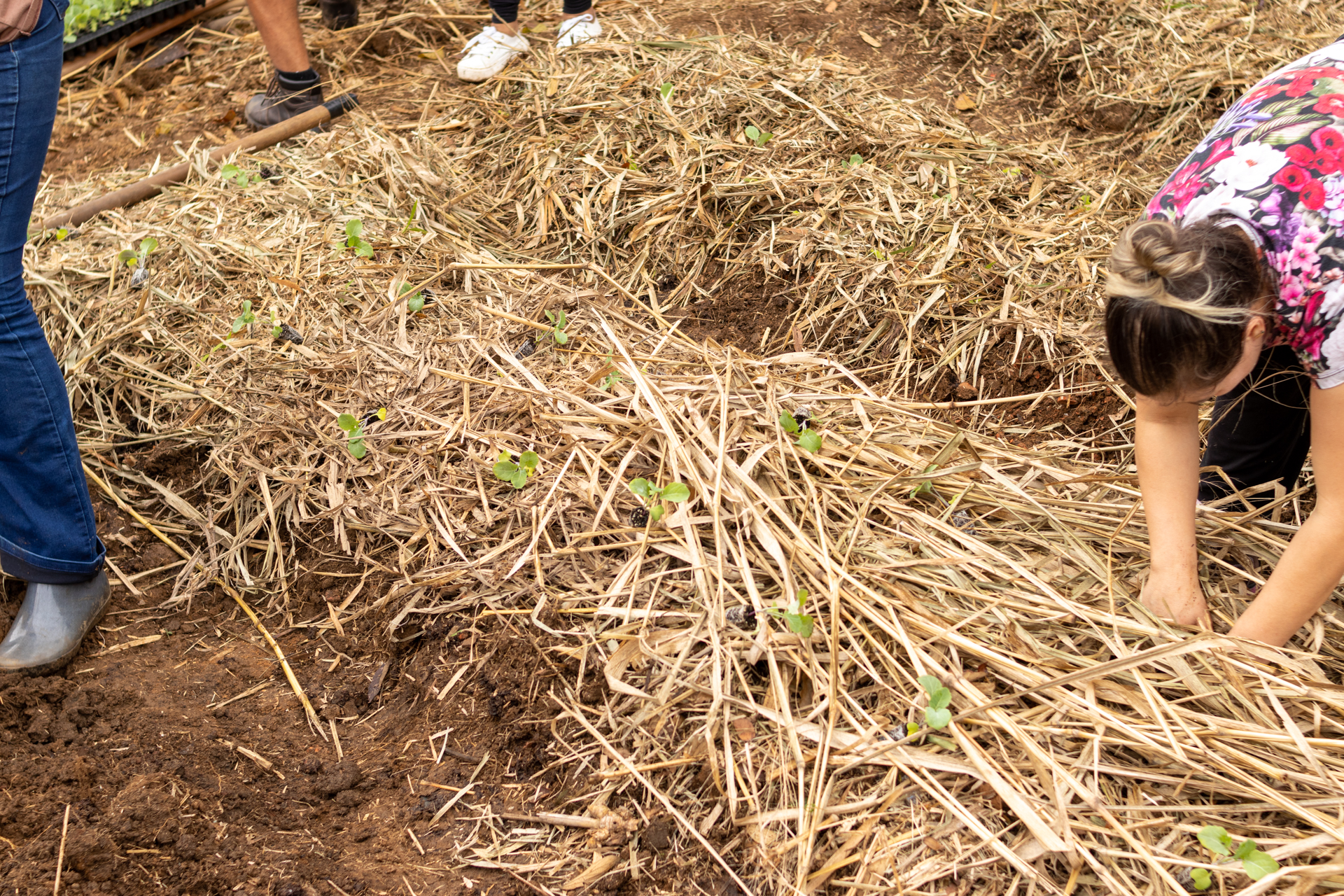 Dentre as hortaliças e legumes plantados estão a alface crespa e roxa, o brócolis, o repolho, a batata aipo, a salsa, a berinjela e o pimentão. “Foram plantadas mais de 700 mudas, e conseguimos contribuir também com algumas ferramentas para apoiar o grupo”, explica a professora. Por meio da mobilização de estudantes do PET Educampo, correspondências chegaram a instituições de Florianópolis, como a Comcap, o Sesc Cacupé, o Restaurante da Família e a Acolhida na Colônia, e foi possível viabilizar a doação de composto, mudas, baldes para coleta do resíduo orgânico, e até a ajuda de um caminhão, disponibilizado pela loja Oliveira Material de Construção.