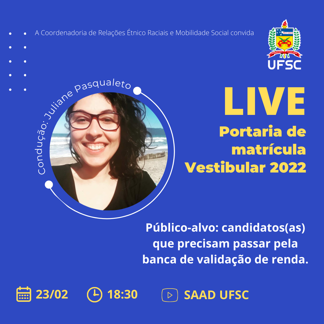 Sugestões, elogios ou reclamações devem ser encaminhados para a Ouvidoria da UFSC.