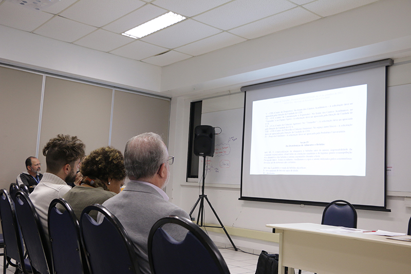 O presidente da comissão, Diogo Félix, do Departamento de Assuntos Estudantis (DeAE/PRAE), apresentou um breve relato sobre o trabalho da comissão. Desde setembro de 2022, a comissão se debruça sobre a temática de festas. “Estudamos regulamentações de outras universidades, e cabe ressaltar que mais de 80% não possui Resolução de Festas, porque as festas são proibidas na maioria das instituições”.