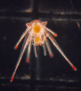 Larva do ouriço-do-mar Echinometra lucunter com 10 dias de larvicultura, apresentando morfologia típica de plúteo com braços bem desenvolvidos. Foto: Divulgação LMM/UFSC