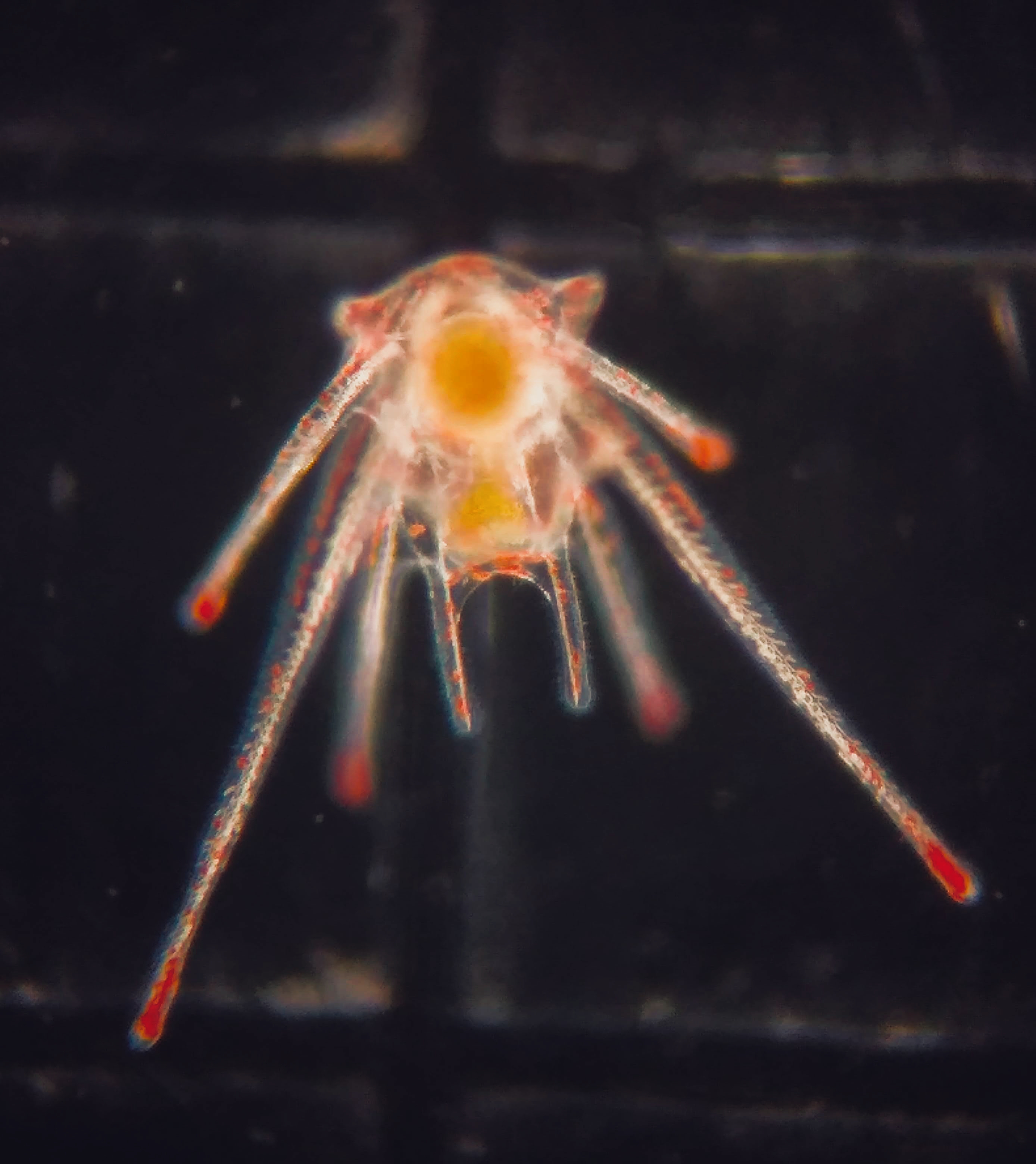 Larva do ouriço-do-mar Echinometra lucunter com 10 dias de larvicultura, apresentando morfologia típica de plúteo com braços bem desenvolvidos. Foto: Divulgação LMM/UFSC
