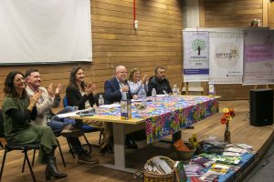 Após as falas da mesa de abertura, foi realizada a conferência “A formação de professores no Plano Nacional de Educação 2025-2035”, com o parlamentar Pedro Uczai, da Comissão de Educação da Câmara dos Deputados, e a professora Margareth Fadanelli Simionato, coordenadora da Anfope/SC.