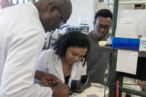 O professor Louis Pergaud Sandjo, coordenador do laboratório, trouxe o desejo de estudar e conhecer produtos nativos de Camarões, país onde nasceu e iniciou a trajetória de pesquisador. Lá, analisou uma planta comestível, a Triumfetta cordifolia, popularmente conhecida como Nkui, e usada na medicina popular. Em um dado momento, a Nkui levou à sua tia, diabética, ao desmaio. Entender porque isso acontecia era importante, assim como destrinchar as combinações de compostos e moléculas escondidas na erva.