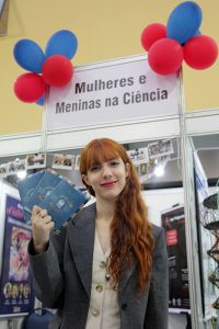 Lorrane Olivlet passou pela Feira de Ciências antes de ir à conferência. Foto: Salvador Gomes/Agecom/UFSC