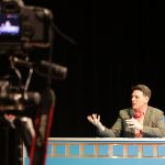 Após a fala de todos, houve o início da conferência e gravação do programa Estúdio Ciência da TV UFSC. Entraram no palco as cientistas e suas histórias, de superação, de sucesso, de preocupação com o futuro, de sensibilidade para a formação de novas cientistas… com o uniforme que lhes couber e nos espaços que quiserem.