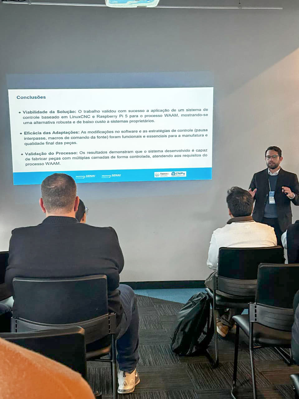 - Menção honrosa no Prêmio Calgary durante o Rio Pipeline & Logistics 2025, em setembro, promovido pelo Instituto Brasileiro de Petróleo (IBP), um dos maiores eventos internacionais de Engenharia de Dutos. O trabalho premiado tem o título “Structural optimization of a 20-inch pipe clamp using arc-based additive manufacturing”, de autoria dos pesquisadores Daniel Galeazzi (pós-doutorando do Programa de Pós-Graduação em Engenharia Mecânica), Cláudio Marques Schaeffer (doutorando), Laercio Silva Junior, José Carlos Pereira, Mateus Barancelli Schwedersky e Régis Henrique Gonçalves e Silva (professores do Departamento de Engenharia Mecânica). O estudo foi selecionado entre 570 trabalhos submetidos e 307 apresentados, ficando entre os seis finalistas, conquistando o segundo lugar e recebendo uma menção honrosa. O trabalho foi fruto de projeto financiado pela petrobras, com coordenação do professor Regis Silva, que gerou dois pedidos de patente para a UFSC.