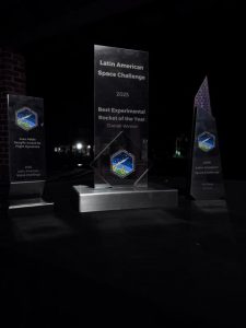 Prêmios recebidos pela Kosmos Rocketry na 6° Latin American Space Challenge (LASC). Foto: Comunicação Institucional UFSC Joinville
