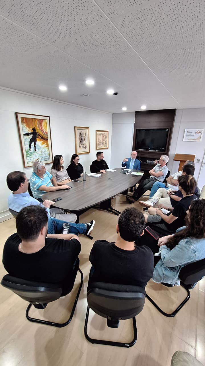 Na manhã desta segunda-feira, 10 de novembro, o reitor da Universidade Federal de Santa Catarina (UFSC), Irineu Manoel de Souza, reuniu-se com representantes de entidades vinculadas à comunidade universitária para discutir e esclarecer questões relativas ao próximo processo eleitoral da Reitoria. Estiveram presentes, ao lado do reitor, o chefe de Gabinete, Bernardo Meyer, a diretora-geral do Gabinete, Camila Pagani, o assessor institucional, Alexandre Verzani, a pró-reitora de Graduação e Educação Básica, Dilceane Carraro, e o secretário de Comunicação, Marcus Paulo Pessôa.