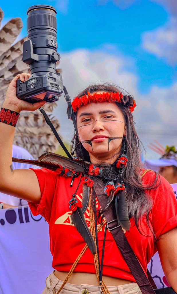 A estudante do curso de Cinema da UFSC, Édina Barbosa Farias, do povo Kaingang, pontua que sua participação na COP 30 ficou ligada à cobertura do evento, junto à delegação de “comunicação” da Articulação dos Povos Indígenas do Sul (ARPINSUL) e sob coordenação da Articulação dos Povos Indígenas do Brasil (APIB). Ela reflete que a experiência promoveu articulação política entre lideranças e movimento indígena, trazendo a representatividade dos povos do sul dentro de um contexto que tende a negar até mesmo sua existência.