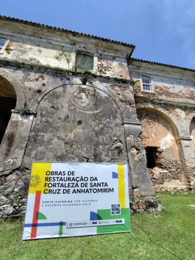A Fortaleza de Santa Cruz de Anhatomirim, em Governador Celso Ramos (SC), deu início na manhã desta quarta-feira, 3 de dezembro, às obras de restauração do seu principal conjunto arquitetônico. O anúncio foi feito em cerimônia no próprio monumento, com presença de representantes da Universidade Federal de Santa Catarina (UFSC) – gestora da fortaleza desde 1979 – e do Instituto do Patrimônio Histórico e Artístico Nacional (Iphan), responsável pela coordenação da programação Avanços do Patrimônio em Santa Catarina. A intervenção integra um pacote de R$ 30 milhões do Iphan destinado a bens históricos no estado e marca a primeira obra do projeto Restauração das Fortificações Catarinenses #EuValorizoAsFortalezas, iniciativa de três anos voltada a recuperar, modernizar e ampliar o uso público dos monumentos administrados pela UFSC.