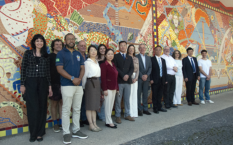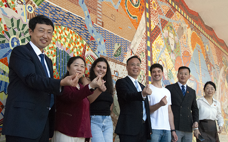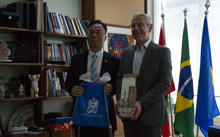 Representantes da universidade chinesa visitaram, nesta quarta-feira, o Campus de Florianópolis, no bairro Trindade, acompanhados de equipe da Secretaria de Relações Internacionais (Sinter). No final da manhã, a comitiva posou para fotos em frente ao mural da Reitoria e subiu ao gabinete para assinar o convênio.