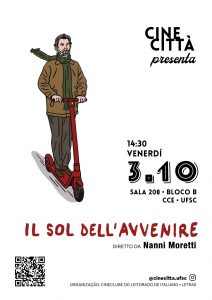 Organizado pelo Leitorado in loco em parceria com o curso de Letras Italiano da Universidade Federal de Santa Catarina (UFSC), o Cineclube Cinecittà exibe o filme Il sol dell’avvenire, do cineasta italiano Nanni Moretti, nesta sexta-feira, 3 de outubro, às 14h30. A atividade ocorre na sala 208A do Centro de Comunicação e Expressão (CCE).