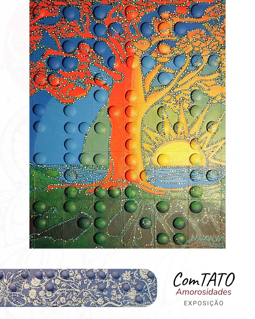 A mostra ComTATO – Amorosidades é uma nova fase do projeto lançado em 2023 e apresenta 25 obras inéditas, entre pinturas, colagens, máscaras e objetos que recebem inscrições objetivas em braille, dando continuidade ao projeto de arte inclusiva do artista para pessoas cegas e com baixa visão.