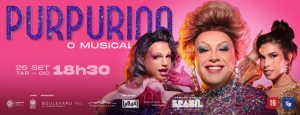 Purpurina – O Musical será apresentado na sexta-feira, 26 de setembro, às 18h30 e às 21h30, no Teatro Ademir Rosa, no Centro Integrado de Cultura, em Florianópolis. O espetáculo é realizado pelo Ministério da Cultura, através da Lei Rouanet, com patrocínio do Boulevard 14/32 e Floripa Airport, apoio da Secretaria de Cultura, Arte e Esporte (SeCArtE) da Universidade Federal de Santa Catarina (UFSC) e produção do Laboratório de Design, Audiovisual e Transmídia (LAB DAT). Os ingressos estão disponíveis pelo site Pensa No Evento.