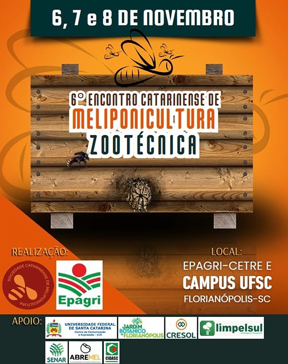 O Centro de Ciências Agrárias (CCA) da Universidade Federal de Santa Catarina (UFSC) e a Empresa de Pesquisa Agropecuária e Extensão Rural (Epagri) promovem o 2º Simpósio Nacional e o 6º Encontro Catarinense de Meliponicultura Zootécnica, de quinta-feira a sábado, 6 a 8 de novembro. Com palestras, feira e oficinas, a programação ocorre no CCA e na Epagri, no bairro Itacorubi, em Florianópolis.