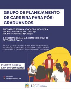 O Laboratório de Informação e Orientação Profissional (Liop) da Universidade Federal de Santa Catarina (UFSC) está com as inscrições abertas até 5 de setembro para a participação no Grupo de Planejamento de Carreira para Pós-Graduandos. São ofertadas duas turmas: uma presencial e uma online.