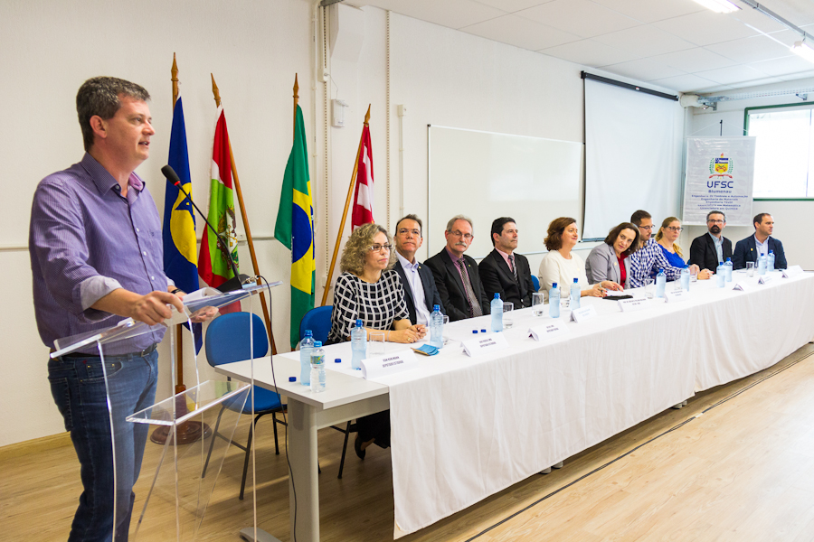 O processo de negociação com a Petrobras para a construção do prédio foi lembrado pela reitora. Ela descreveu a visita da comitiva da UFSC ao Centro de Pesquisa e Desenvolvimento (Cenpes) da Petrobras, em agosto de 2009, quando o projeto do curso de Geologia foi apresentado e a empresa decidiu apoiá-lo. Essa reunião também foi relatada pelo professor Edison, do curso de Geologia, que apontou a escassez de geólogos em Santa Catarina e a urgência de criação do curso: “Isso ficou evidente durante as enchentes de 2008, em Itajaí, quando não havia profissionais qualificados para atuarem no desastre”. A vice-reitora Lúcia Helena, além de agradecer a todos que participaram e se dedicaram à viabilização do edifício, afirmou que o momento era de celebração: “É o fim de uma obra, mas o começo de muitas possibilidades acadêmicas”.